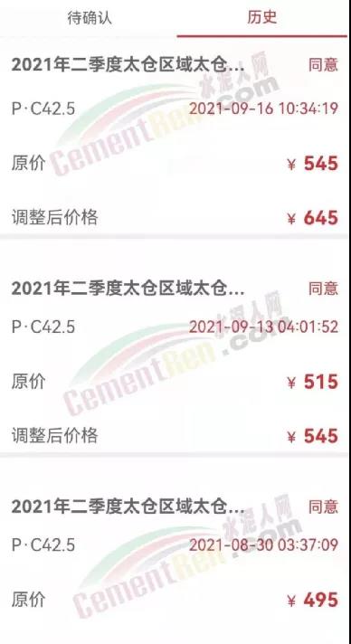 相關數(shù)據(jù)顯示,太倉海螺P.C42.5水泥從8月底的495元/噸經歷兩次漲價后,已經漲至9月16日的報價645元/噸,漲了150元/噸。