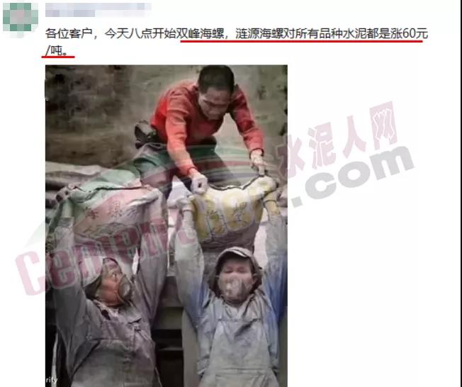 16日當天,無錫金久水泥、無錫市天裕建材、宜興市勝達水泥、宜興市青象水泥、江陰綺星水泥等水泥廠都跟隨海螺水泥調漲了100元/噸。