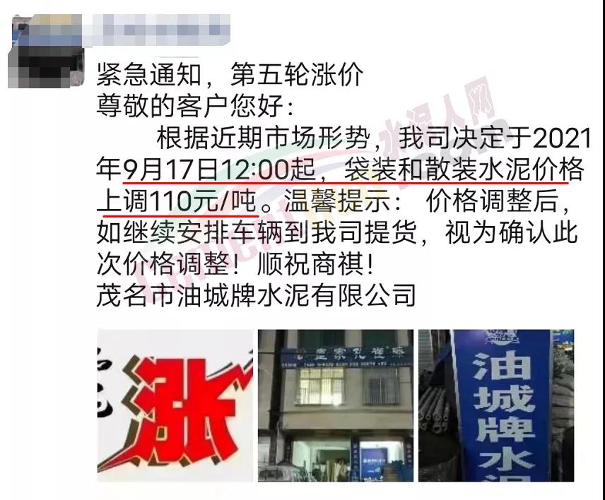 茂名市油城牌水泥有限公司通知,于9月17日12時起上調水泥價格110元/噸。