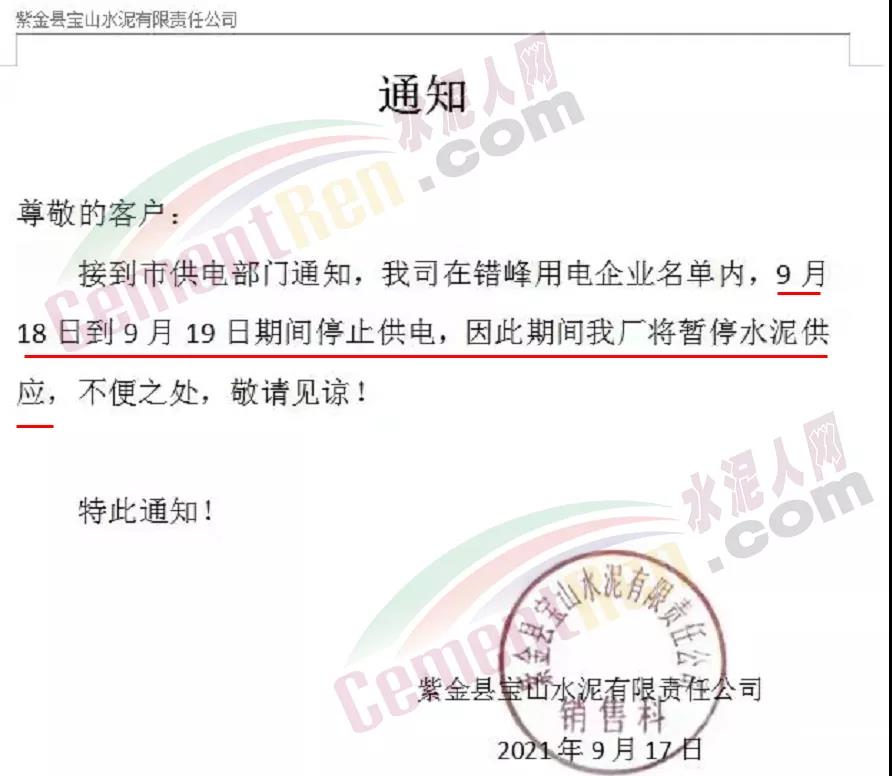 紫金縣寶山水泥有限責任公司通知,9月18日到9月19日期間停止停電,因此期間工廠將暫停水泥供應。