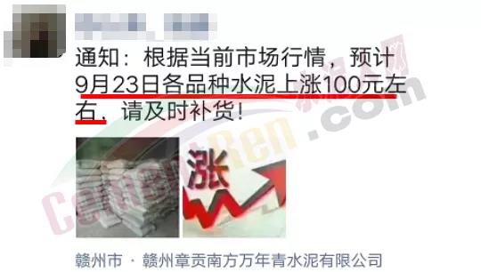 日前,江西贛州市南方萬年青水泥有限公司通知,9月23日各品種水泥將再漲100元/噸。