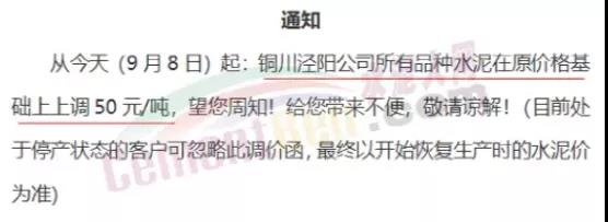 9月8日,陜西關(guān)中地區(qū)冀東水泥涇陽公司通知上調(diào)各標(biāo)號水泥價格50元/噸。