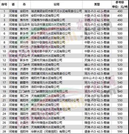 據(jù)水泥人網(wǎng)信息中心人工采購數(shù)據(jù),河南區(qū)域目前報價在基本穩(wěn)定在490-590元/噸之間。也有極個別企業(yè)量大優(yōu)惠,在此價格基礎(chǔ)上下降10-20元/噸。