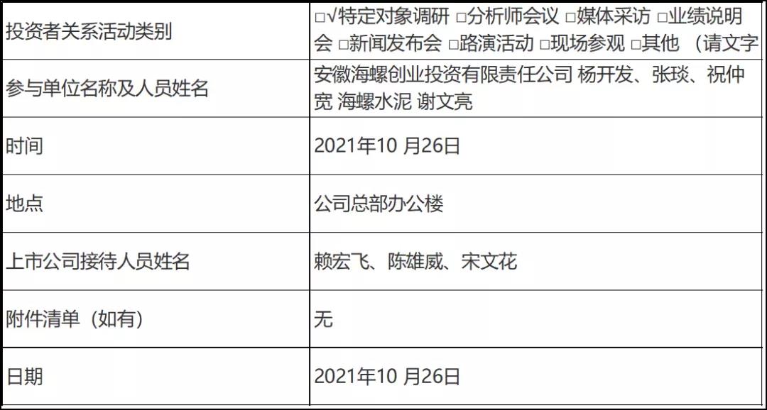 塔牌集團(tuán)獲海螺水泥、海螺創(chuàng)業(yè)投資調(diào)研