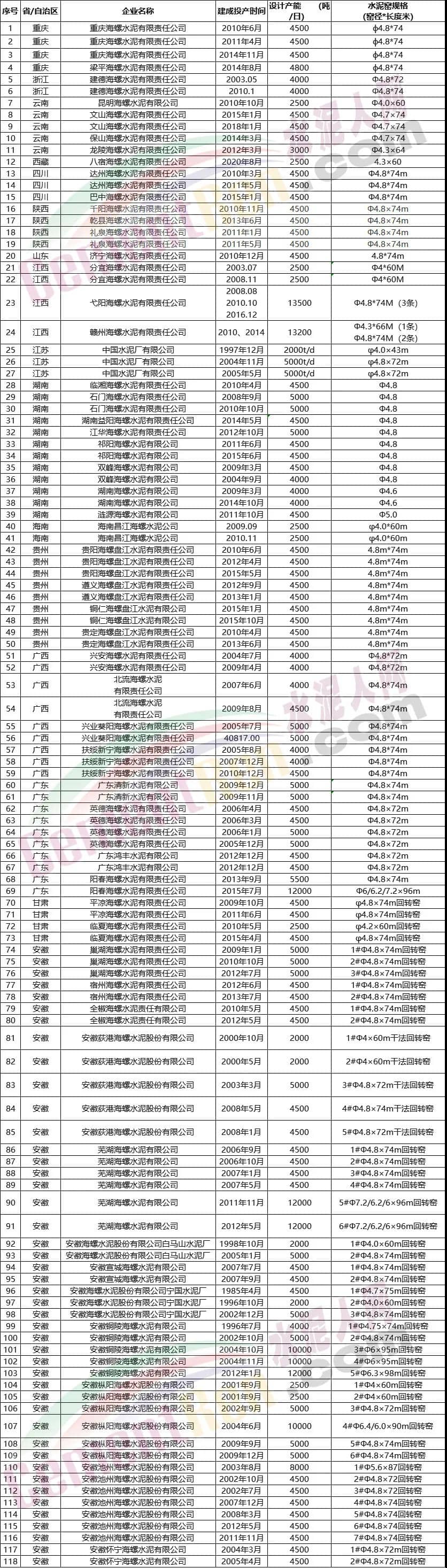 據(jù)水泥人網(wǎng)不完全統(tǒng)計(jì),目前海螺水泥在建項(xiàng)目還包括興安海螺2500t/d、水城海螺盤(pán)江水泥4000t/d、南江海螺5000t/d以及蕭縣海螺4000t/d等多條生產(chǎn)線,計(jì)劃點(diǎn)火時(shí)間從2022到2025年。截止目前,海螺集團(tuán)旗下140多家子公司,分布在安徽省內(nèi)基地和十四個(gè)區(qū)域,橫跨華東、華南和西部18個(gè)省、市、自治區(qū)和印度尼西亞、緬甸、老撾、柬埔寨等國(guó)。