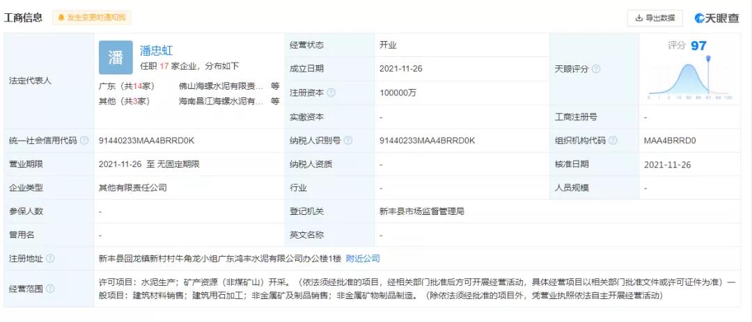 圖:廣東海螺鴻豐水泥有限公司工商注冊(cè)信息