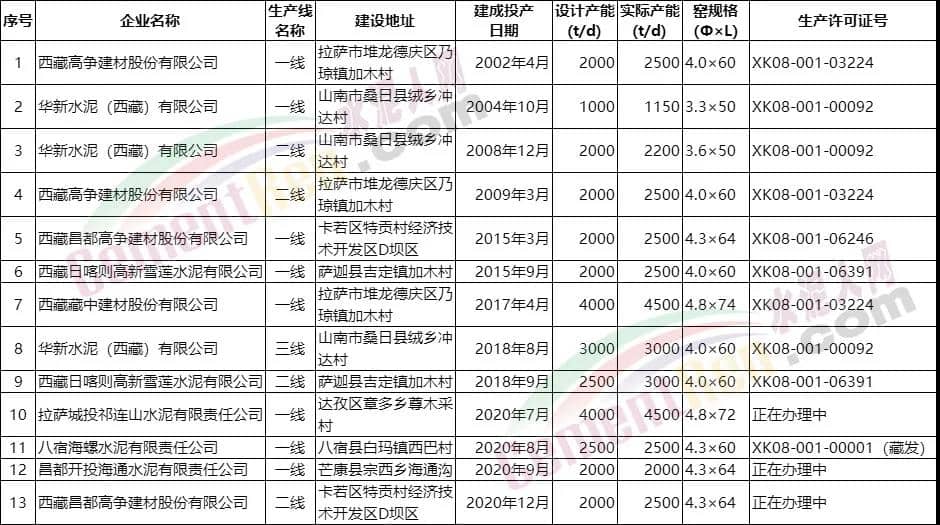 據(jù)了解,西藏開投海通水泥有限公司為西藏開發(fā)投資集團公司控股企業(yè),其占股70%,西藏昌都高爭建材股份有限公司占股20%。西藏工信廳公開信息顯示,企業(yè)2000t/d水泥熟料生產(chǎn)線于2020年9月投產(chǎn),生產(chǎn)許可證正在辦理中。