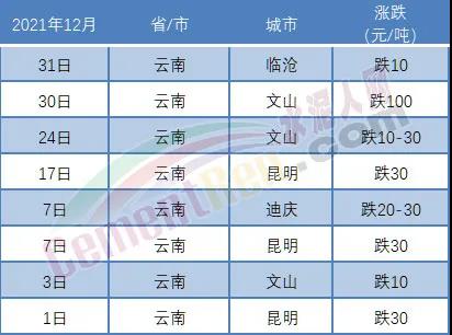 從國(guó)家統(tǒng)計(jì)局近期發(fā)布的2021年12月下旬流通領(lǐng)域普通硅酸鹽水泥P.O 42.5市場(chǎng)價(jià)格來(lái)看,水泥市場(chǎng)仍以下行為主。其中普通硅酸鹽水泥(P.O 42.5袋裝)均價(jià)551.8元/噸,較12月中旬跌了25.6元/噸;普通硅酸鹽水泥(P.O 42.5散裝)均價(jià)509.1元/噸,較中旬下跌11.8元/噸。12月下旬的報(bào)價(jià)與2021年年初報(bào)價(jià)相比P.O42.5散裝水泥報(bào)價(jià)仍高出71.4元/噸。相關(guān)市場(chǎng)人士表示,仍未跌至“心理預(yù)期”,后期還會(huì)持續(xù)下行。