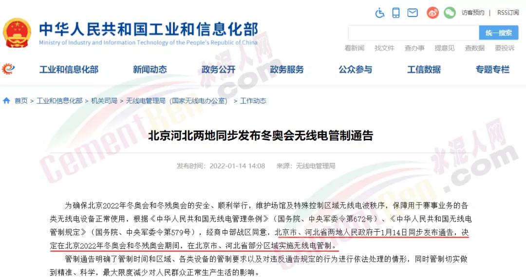 近日,工信部官網(wǎng)發(fā)布“北京河北兩地同步發(fā)布冬奧會(huì)無線電管制通告”稱為確保北京2022年冬奧會(huì)和冬殘奧會(huì)的安全、順利舉行,維護(hù)場(chǎng)館及特殊控制區(qū)域無線電波秩序,保障用于賽事業(yè)務(wù)的各類無線電設(shè)備正常使用,根據(jù)相關(guān)文件要求,經(jīng)商中部戰(zhàn)區(qū)同意,北京市、河北省兩地人民政府于1月14日同步發(fā)布通告,決定在北京2022年冬奧會(huì)和冬殘奧會(huì)期間,在北京市、河北省部分區(qū)域?qū)嵤o線電管制。管制從2022年2月4日開始到3月14日0時(shí)結(jié)束。