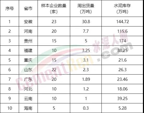 從各區(qū)域水泥出貨量來(lái)看,福建、河北、河南、云南、貴州、重慶、山東、海南、廣東、安徽等區(qū)域出貨量較10日前稍有增加,市場(chǎng)略有回升。