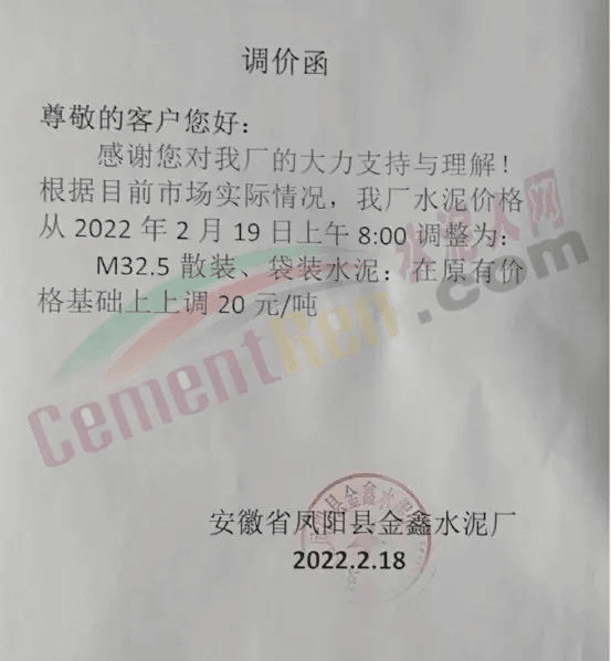 金鑫水泥廠漲價通知