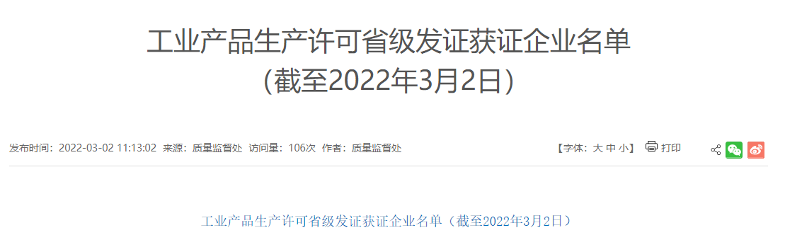 河北市場監(jiān)管局工業(yè)品生產(chǎn)許可證數(shù)據(jù)查詢顯示,河北承大環(huán)保科技有限公司生產(chǎn)許可證編號為(冀)XK08-001-00056,生產(chǎn)地址位于河北省承德市興隆縣北營房鎮(zhèn)北營房村。發(fā)證日期為2021年12月2日,生產(chǎn)許可證有效期至2027年1月16日。