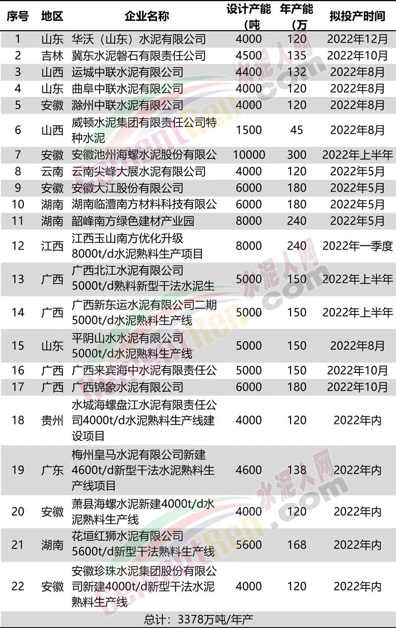 水泥人網(wǎng)通訊員消息,今年以來(lái)市場(chǎng)需求持續(xù)低迷,疊加下游房企頻頻爆雷,以及疫情時(shí)有發(fā)生,給整個(gè)行業(yè)罩上了一層“陰影”。前兩年公示公告擬于今年內(nèi)開(kāi)工和點(diǎn)火投產(chǎn)的生產(chǎn)線也多有延期。