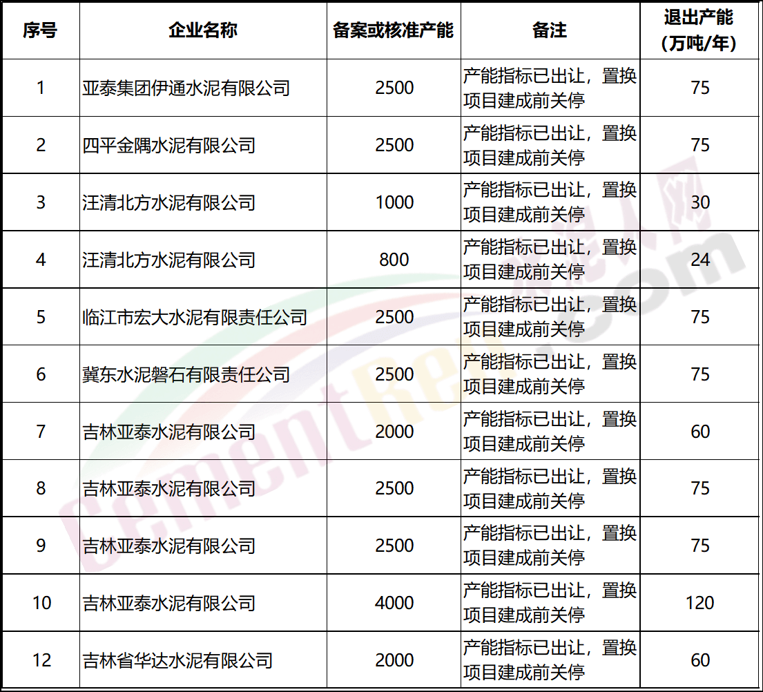 吉林省擬關(guān)停退出12條熟料生產(chǎn)線,退出產(chǎn)能合計744萬噸/年
