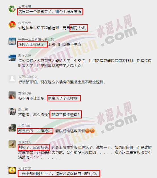 日前水泥人網(wǎng)發(fā)布了一則有關(guān)港珠澳大橋混凝土檢測(cè)報(bào)告造假的消息(相關(guān)鏈接:膽子太大!港珠澳大橋混凝土檢測(cè)造假揭秘……),消息一出引起眾多行業(yè)人士的關(guān)注。多數(shù)高贊評(píng)論提到,這只是一個(gè)縮影,現(xiàn)在很多工程都有假;如此判罰量刑太輕。也有評(píng)論稱,工程不知倒過(guò)幾手,造假才能保證自己的利益。