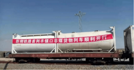 2021年5月22日,裝載著2851噸水泥的H30801次列車由新朔鐵路丹洲營站向呼鐵局豐鎮(zhèn)站出發(fā),列車編組49輛N70型平車,裝載98個22N8型罐式集裝箱,經(jīng)大準(zhǔn)線-豐聯(lián)線-京包線運輸,年發(fā)運量達(dá)20萬噸,有力支援北京雄安新區(qū)基礎(chǔ)建設(shè)。