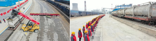 同期,朔州金圓水泥有限公司發(fā)往德州中聯(lián)大壩的熟料鐵路專列正式啟動。