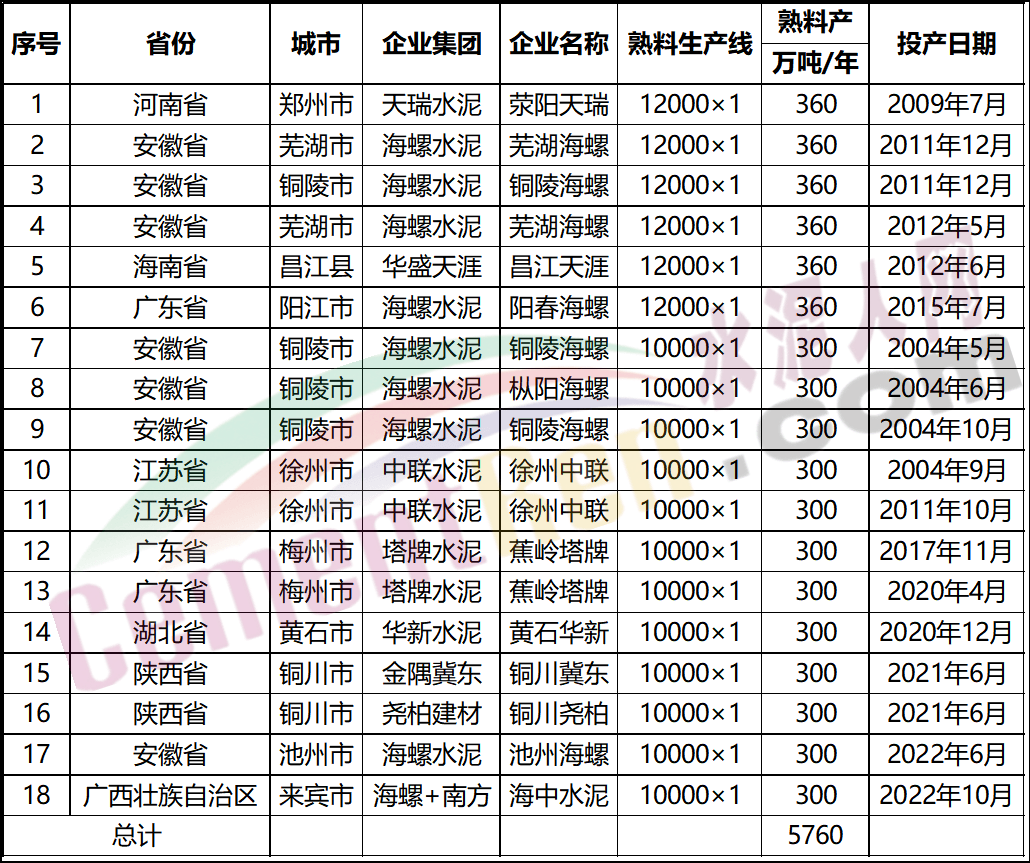 據(jù)水泥人網(wǎng)不完全統(tǒng)計,截止目前公告公示,已建成及在建的8000t/d及以上熟料生產(chǎn)線達(dá)20條以上。