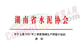 據(jù)水泥人網(wǎng)了解,早在4月13日,湖南省水泥協(xié)會(huì)就發(fā)布《關(guān)于上報(bào)2022年二季度錯(cuò)峰生產(chǎn)停窯計(jì)劃的通知》,其中就有提到湖南省水泥熟料生產(chǎn)線自4月1日至5月31日期間,錯(cuò)峰停窯15天。
