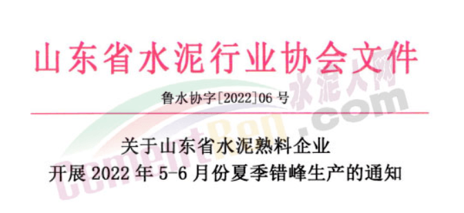 山東發(fā)布夏季錯(cuò)峰生產(chǎn)的通知,要求山東省水泥熟料企業(yè)的熟料生產(chǎn)線從5月21日0:00-6月9日24:00錯(cuò)峰停產(chǎn)20天。