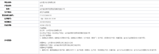 山東省市場監(jiān)督管理局生產(chǎn)許可證數(shù)據(jù)顯示,山東莒州水泥有限公司生產(chǎn)許可證編號(魯)XK08-001-01566,生產(chǎn)許可證有效期至2023年5月28日 。生產(chǎn)許可證產(chǎn)品明細(xì)顯示企業(yè)擁有一條5000t/d熟料生產(chǎn)線和3條粉磨生產(chǎn)線。