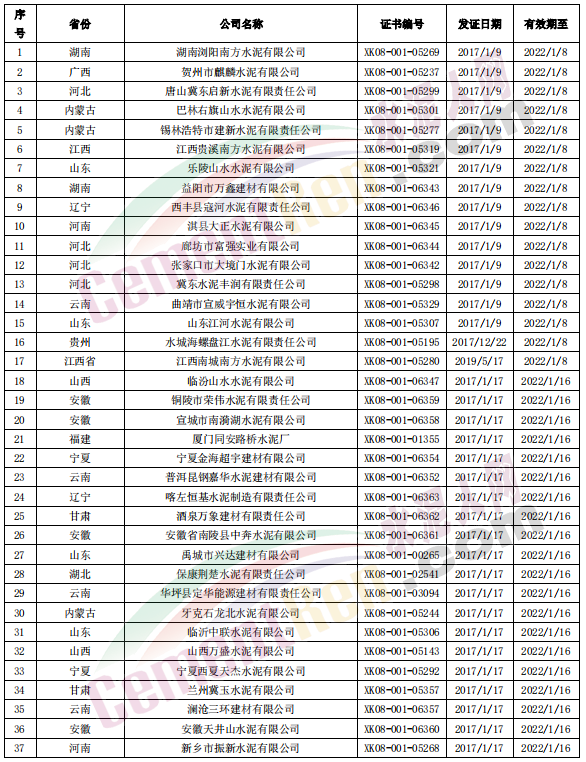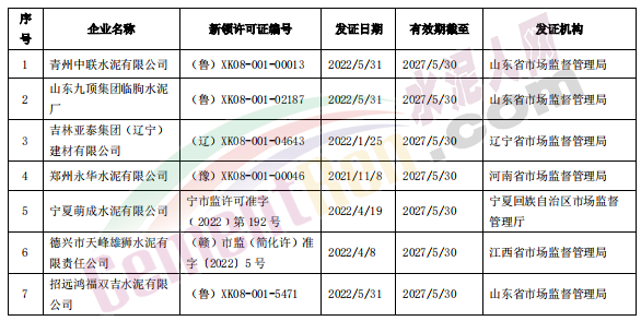 據(jù)水泥人網(wǎng)了解,上述到期許可證部分已經(jīng)在省級(jí)市場監(jiān)管部門換發(fā)了新的生產(chǎn)許可證,另有部分企業(yè)表示等到許可證到期前一兩個(gè)月再申領(lǐng)新證。以5月30日到期的19個(gè)編號(hào)生產(chǎn)許可證為例,已經(jīng)有7家企業(yè)在生產(chǎn)許可證到期前從相應(yīng)省和自治區(qū)市場監(jiān)管局申領(lǐng)了新版生產(chǎn)許可證。