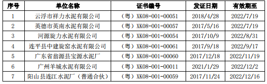 據(jù)查詢,河北、山東、廣東、浙江、福建、貴州六省市場監(jiān)管局省級(jí)發(fā)證水泥行業(yè)生產(chǎn)許可證中,有15家企業(yè)生產(chǎn)許可證將于今年內(nèi)到期。