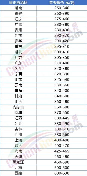 數(shù)據(jù)來源:水泥人網(wǎng)信息中心人工采集,僅供參考,如與實(shí)際不符,請以實(shí)際成交價(jià)格為準(zhǔn)。