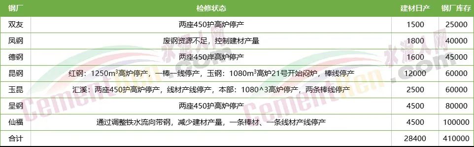 河南省亞新一座高爐燜爐,兩條盤螺軋線停產(chǎn)檢修