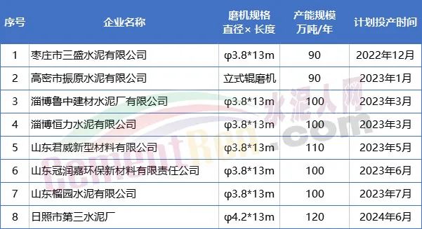 日前,山東省工信廳發(fā)布《關(guān)于8家企業(yè)新建水泥粉磨項(xiàng)目產(chǎn)能置換情況公示》稱,根據(jù)相關(guān)文件規(guī)定,8家企業(yè)制定了產(chǎn)能置換方案。置換比例全部為2:1,新建線產(chǎn)能規(guī)模為90~120萬噸/年,擬投產(chǎn)日期從2022年12月至2024年6月,合計(jì)產(chǎn)能達(dá)810萬噸/年,詳情如下: