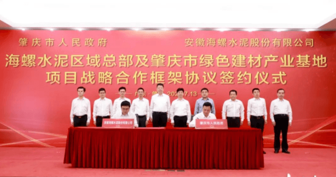 2021年7月13日,肇慶市與安徽海螺水泥股份有限公司簽訂海螺水泥區(qū)域總部及肇慶市綠色建材產(chǎn)業(yè)基地項(xiàng)目戰(zhàn)略合作框架協(xié)議,雙方將在綠色建材產(chǎn)然后業(yè)等領(lǐng)域開展全面深化合作,共同打造國內(nèi)一流的新型建材領(lǐng)域科技創(chuàng)新和產(chǎn)業(yè)發(fā)展平臺。