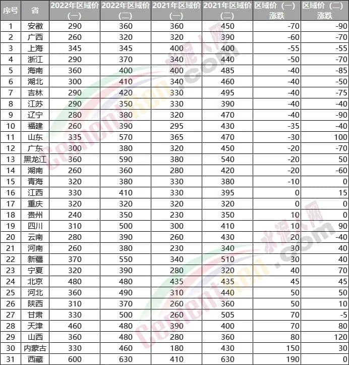 分區(qū)域來看,同比上年同期,安徽、廣西、上海、浙江、海南、湖北、吉林、江蘇、遼寧、福建、山東、廣東、黑龍江、湖南、青海、云南、甘肅等十七個省市自治區(qū)水泥價格均有不同幅度的下跌,其中安徽淮南主要品牌企業(yè)水泥價格下跌90元/噸。