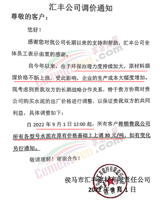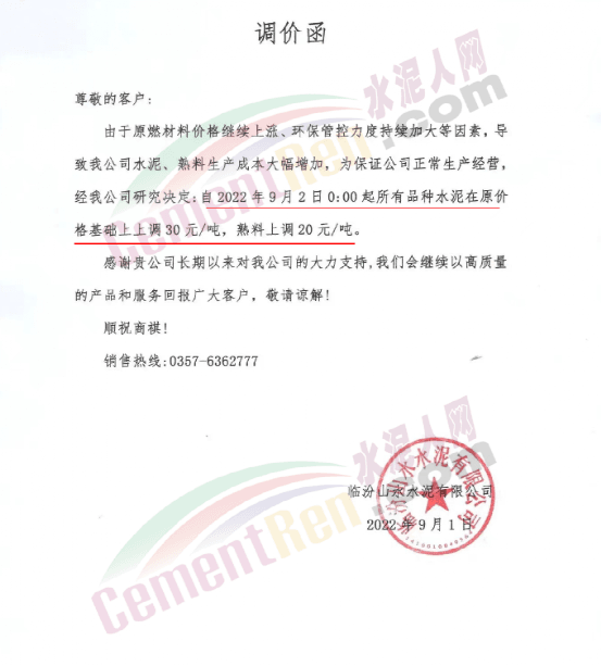 晉中水泥企業(yè)上調(diào)50元/噸