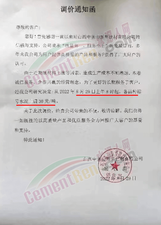 某品種水泥經(jīng)銷售商對水泥人網(wǎng)表示“再不漲,沒時(shí)間了,漲100元/噸,能落實(shí)50元/噸,也是好的。”另有市場人士對水泥人網(wǎng)表示:“8月下旬內(nèi)蒙赤峰上調(diào)了100元/噸,承德區(qū)域跟漲。”
