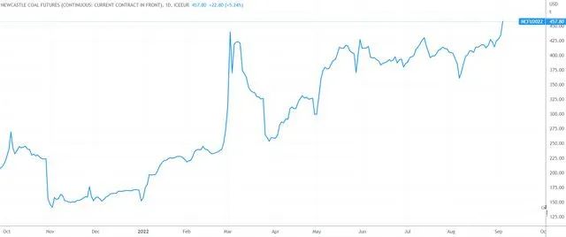 近期歐洲在海外市場搶購煤炭,疊加歐盟對俄煤炭禁運(yùn)生效,多國開始轉(zhuǎn)向澳煤采購,澳大利亞煉焦煤離岸價在經(jīng)歷持續(xù)下跌后開始上漲。