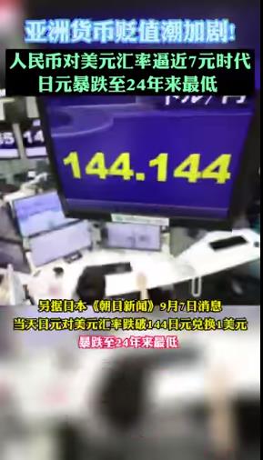 視頻:9月7日,1美元兌人民幣6.9160元,較上一交易日下調(diào)64個基點(diǎn)。人民幣對美元匯率逼近7元時代。