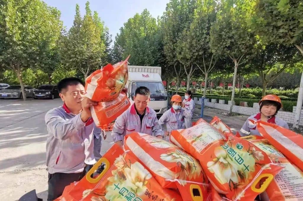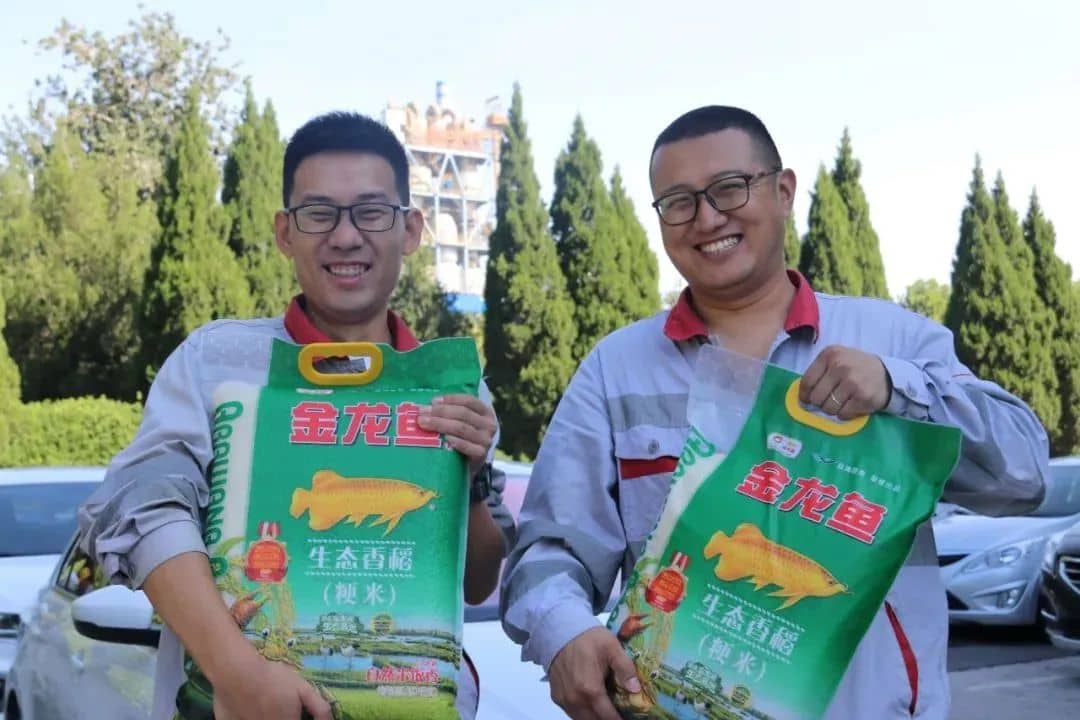 “每人兩袋大米,我和媳婦四袋,今天就不心疼媳婦啦,太重了!”生產(chǎn)車間肖克來提開著玩笑說道。