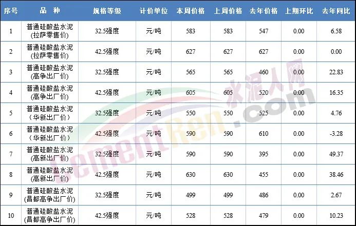 拉薩市主要建材價(jià)格監(jiān)測(cè)表(第37周)