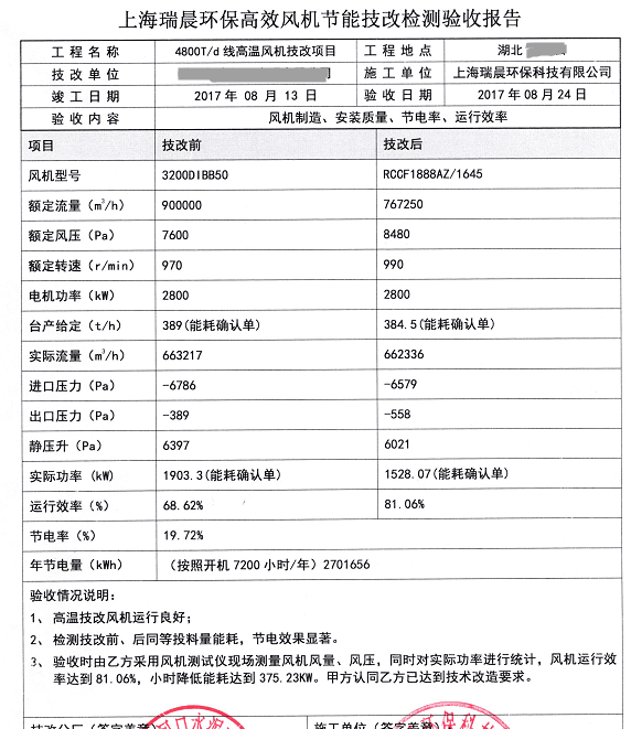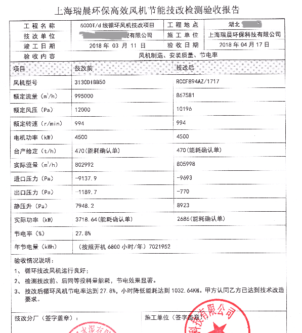 表2 循環(huán)風機改造前后對和技改驗收報告