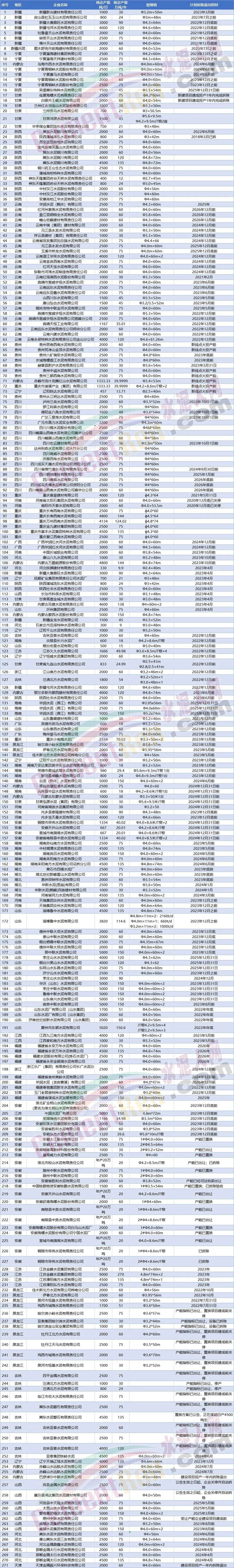 據(jù)水泥人網(wǎng)不完全統(tǒng)計2022-2025年間將有270多條熟料生產(chǎn)線,1.92億噸產(chǎn)能退出。根據(jù)要求,2025年我國標(biāo)桿產(chǎn)能比重要超過30%,未來行業(yè)2500t/d及以下規(guī)模產(chǎn)能有望陸續(xù)退出,總產(chǎn)能將收縮8.6%以上。