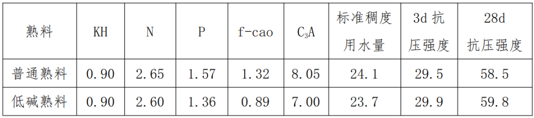 普通熟料和低堿熟料數(shù)據(jù)對比