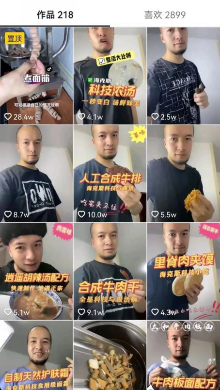 坐擁近800萬粉絲的辛吉飛發(fā)布的視頻中,合成食物制作視頻讓人大開眼界,你吃的牛不是牛,羊不是羊,雞不是雞,肉不是肉,我們吃的其實都是化工品。