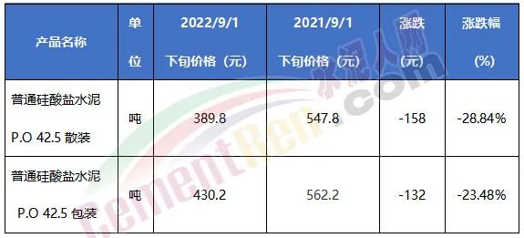 流通領(lǐng)域P.O 42.5散裝價格較上年同期下跌了158元/噸,跌幅8.84%。P.O 42.5包裝水泥下跌了132元/噸,跌幅23.84%。