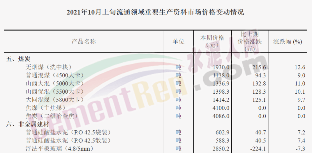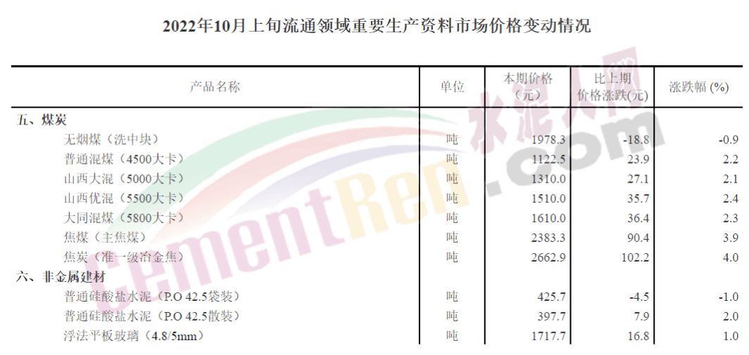 煤炭價(jià)格持續(xù)高位運(yùn)行,水泥價(jià)格同比下跌近200元/噸