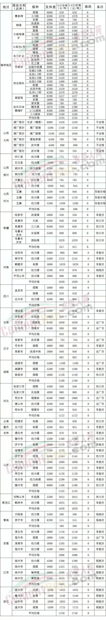 全國各地近期煤炭參考報(bào)價(jià)