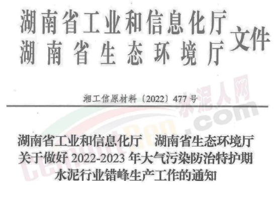 湖南省發(fā)布《關(guān)于做好2022-2023年大氣污染防治特護(hù)期水泥行業(yè)錯(cuò)峰生產(chǎn)工作的通知》要求 2022-2023年大氣污染防治特護(hù)期間,長株潭及傳輸通道城市(岳陽市、常德市、益陽市)水泥熟料生產(chǎn)線錯(cuò)峰生產(chǎn)天數(shù)基數(shù)為80天,其他市州為75天,其中2022年第四季度(10月16日-12月31日)錯(cuò)峰生產(chǎn)時(shí)間不少于30天。