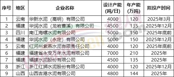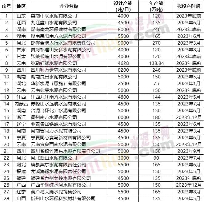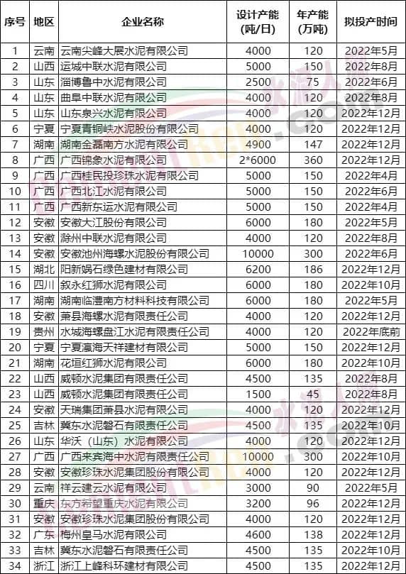 據(jù)水泥人網(wǎng)此前報(bào)道,今年內(nèi)已點(diǎn)火投產(chǎn)的生產(chǎn)線分別為: