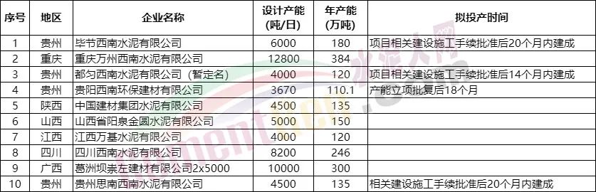 年內(nèi)已點(diǎn)火投產(chǎn)的熟料生產(chǎn)線超10條
