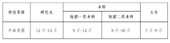 一類(lèi)本科年收9-12萬(wàn),研究生12-14萬(wàn),大專(zhuān)7萬(wàn)~9萬(wàn);