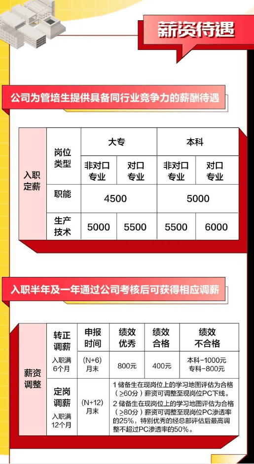 月薪:碩士研究生8000元/月(985/211院校9000元/月),第一批次本科6500元/月(985/211院校7000元/月),第二批次本科6000元/月,大專(zhuān)5500元/月;